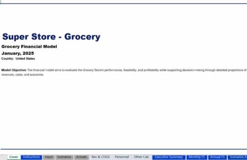This financial model is specifically designed for grocery store businesses, offering a robust framework for financial planning and analysis. Whether you're starting a new store or managing an existing operation, this tool equips you with the insights needed to plan, analyze, and manage your [read more]