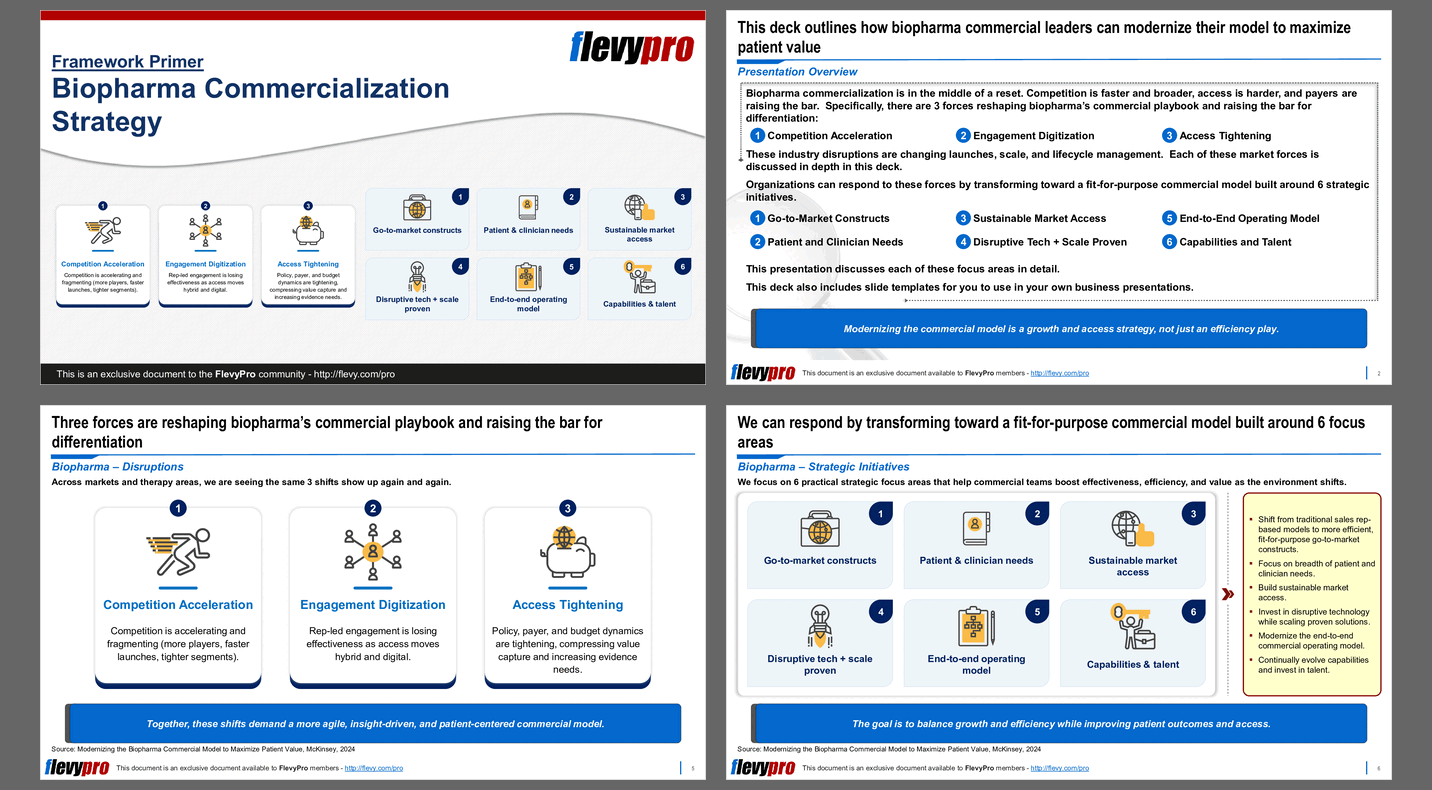 This deck on Biopharma Commercialization Strategy also includes slide templates for you to use in your own business presentations.