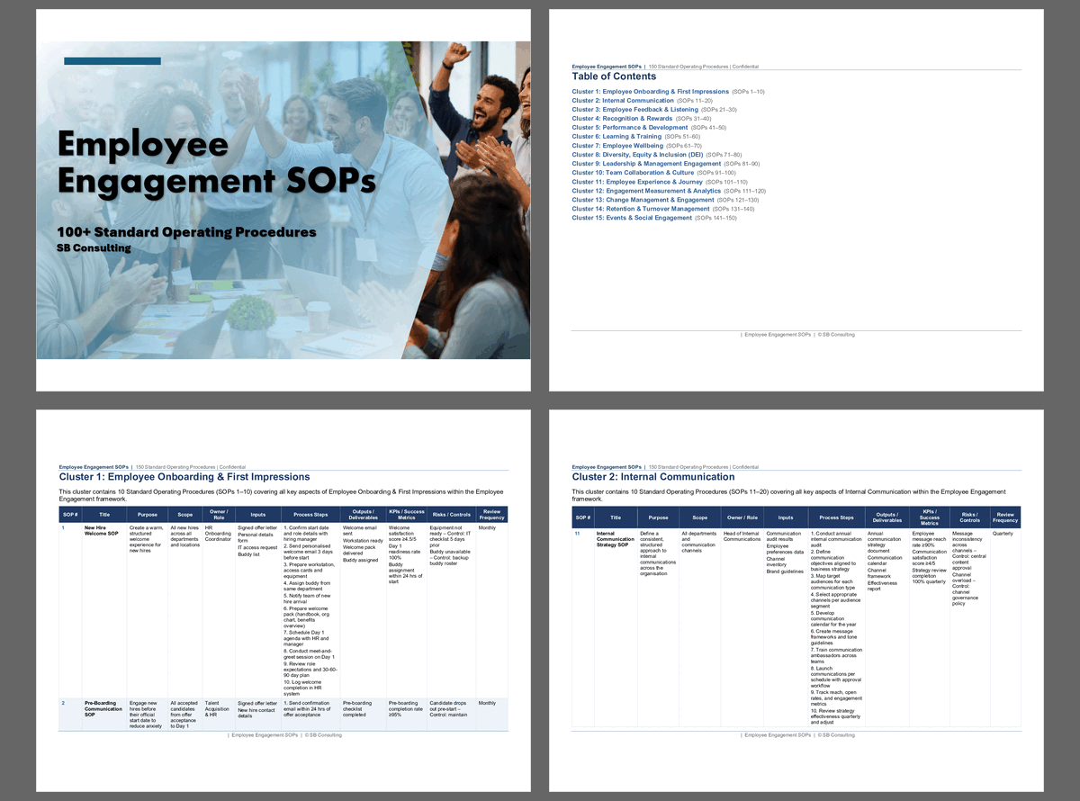 ✔ 150 Employee Engagement SOPs (End-to-End Coverage)