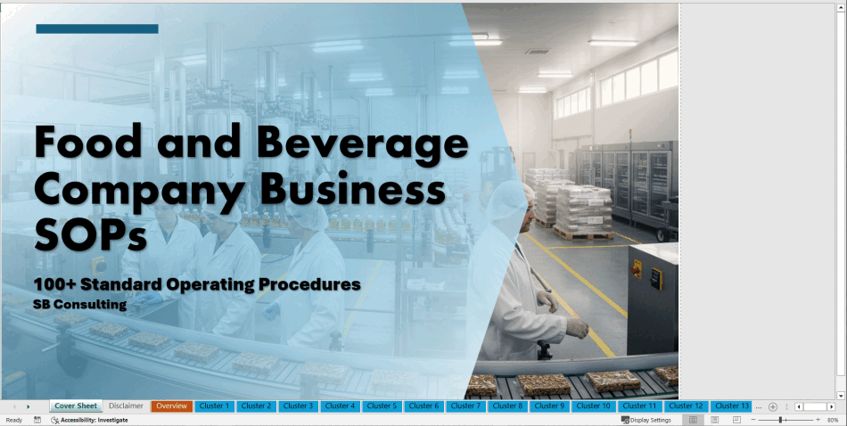Are you ready to take your food & beverage company to the next level? Streamline your processes, ensure total compliance, and guarantee the highest levels of quality with The 100+ Food & Beverage Company SOP Library. This complete Excel template is packed with over 100 meticulously crafted SOPs (Standard Operating Procedures) that cover every critical aspect of your business, ensuring efficiency, safety, compliance, and growth.