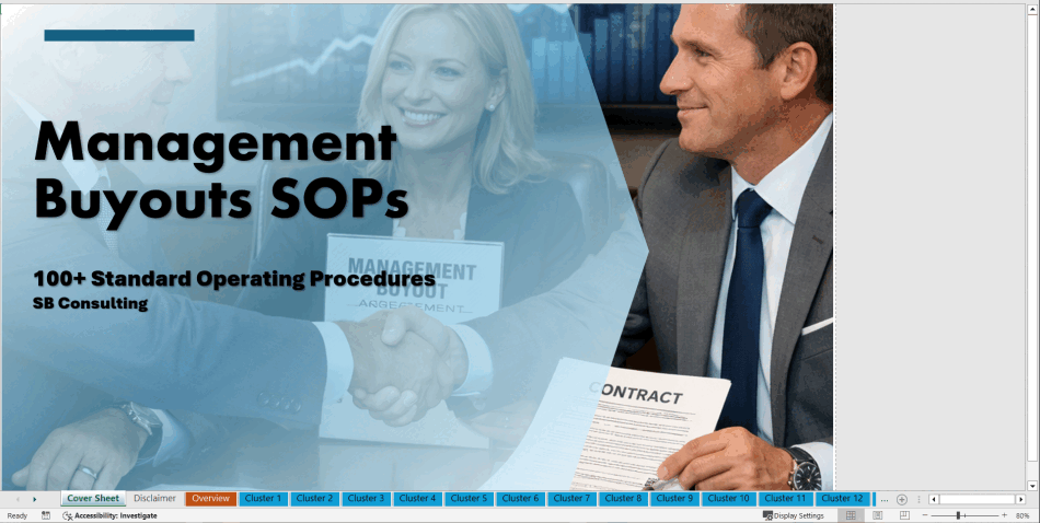 The Management Buyout (MBO) SOPs Library is a high-performance Excel-based execution system containing 150 consulting-grade Standard Operating Procedures (SOPs) designed to originate, structure, finance, negotiate, close, and scale MBO transactions end-to-end.