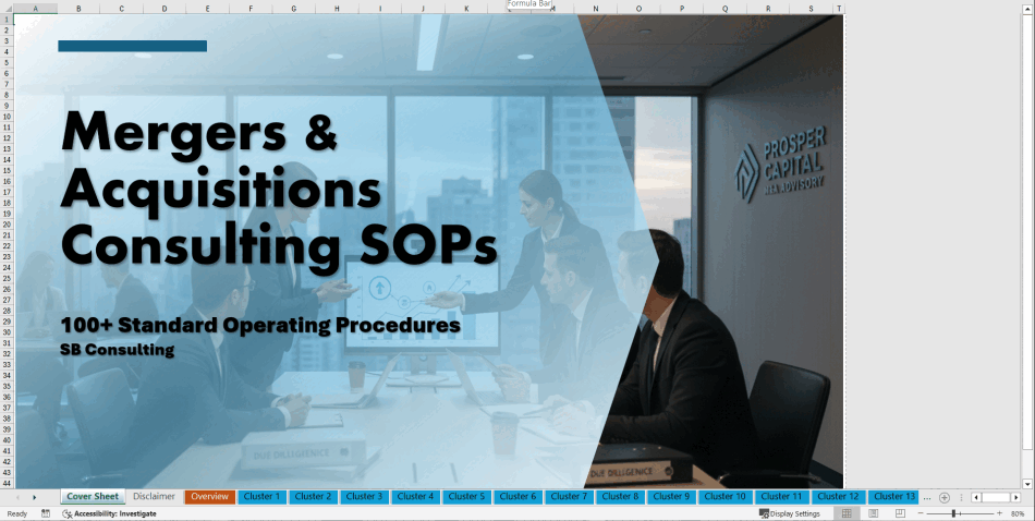 This is the ultimate M&A consulting toolkit, meticulously structured to ensure your deals are faster, safer, and more profitable. Don't leave your next transaction to chance – equip your team with 100+ SOPs Excel templates today and transform how you source, structure, execute, and close deals.