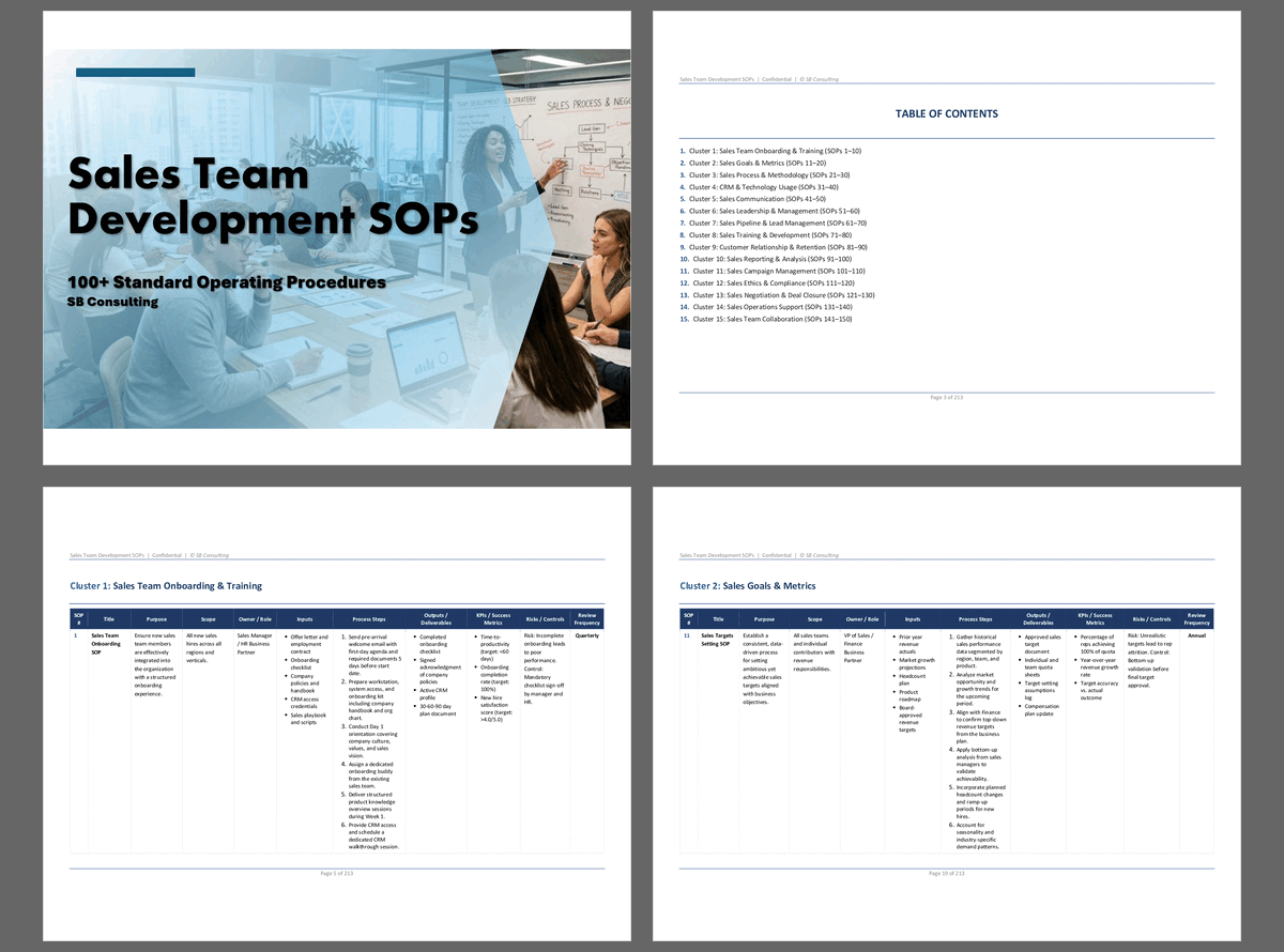 ✔ 100+ Sales Team Development SOPs (End-to-End Coverage)