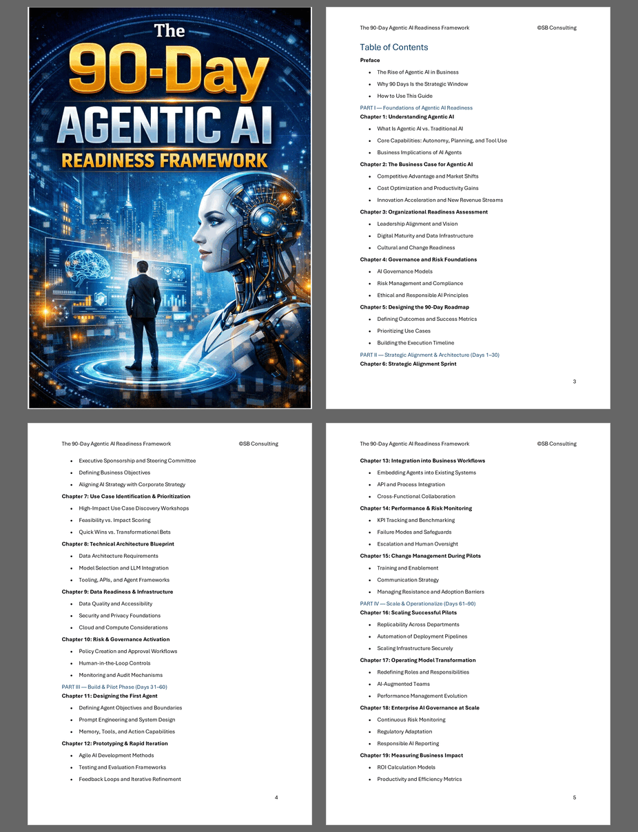 Source: Best Practices in Agentic AI Word: 90-Day Agentic AI Readiness Framework Word (DOCX) Document, SB Consulting