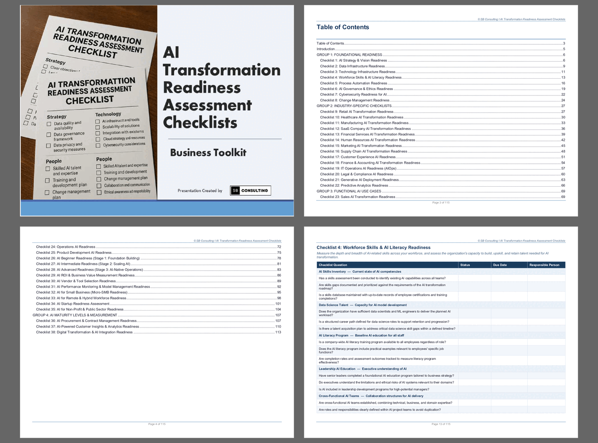 Download the 38+ AI Transformation Readiness Checklists Business Toolkit today and turn AI into your competitive advantage.
