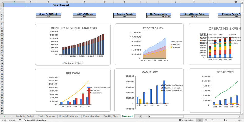 What This Model Helps You Analyze and Forecast. This Excel template provides a clear framework for financial planning and forecasting. It helps analysts and business owners conduct capital budgeting, investment analysis, and financial planning. The tool supports various business needs, including cash flow analysis, scenario analysis, and sensitivity analysis. By using historical performance and revenue growth assumptions, users can estimate stable growth rates and forecast future periods effectively.