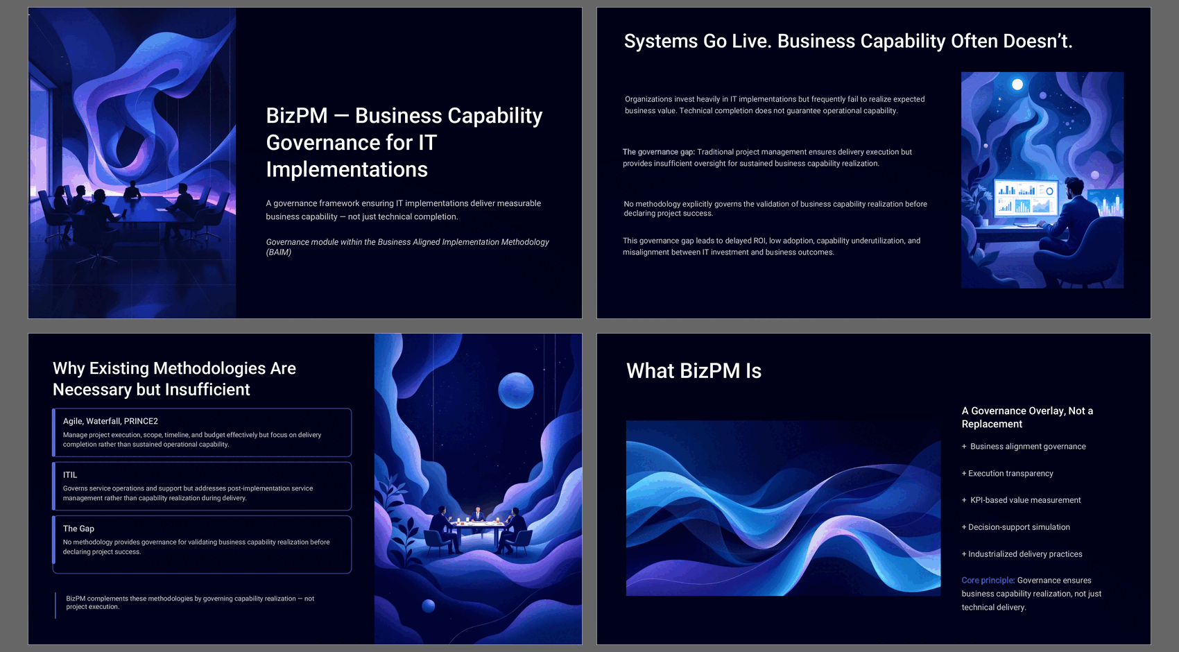 BizPM™ is a governance framework designed to ensure IT implementations deliver measurable business capability – not merely technical completion.