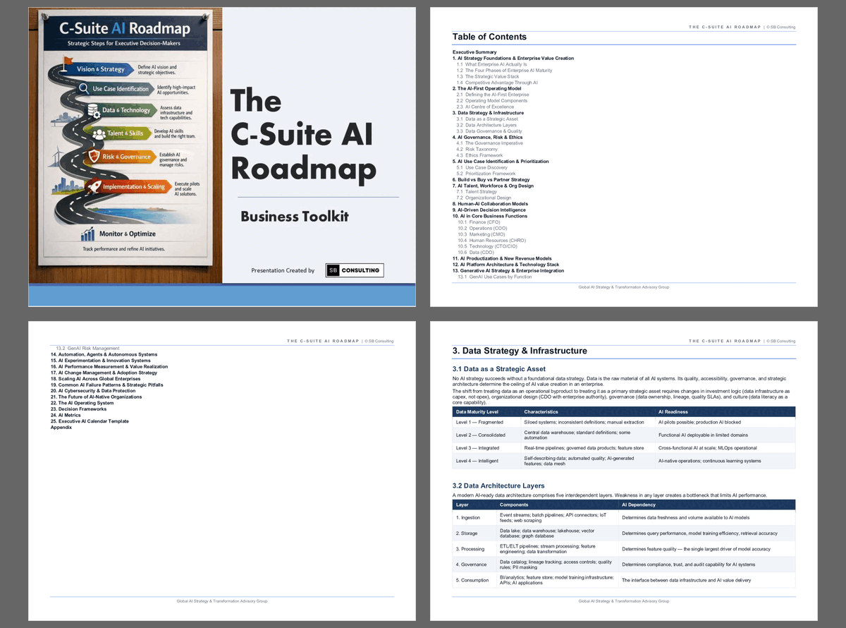 The C-Suite AI Roadmap Toolkit is not another theoretical whitepaper. It is a battle-tested, enterprise-grade execution system designed specifically for CEOs, CFOs, CIOs, and board-level leaders who want one thing: