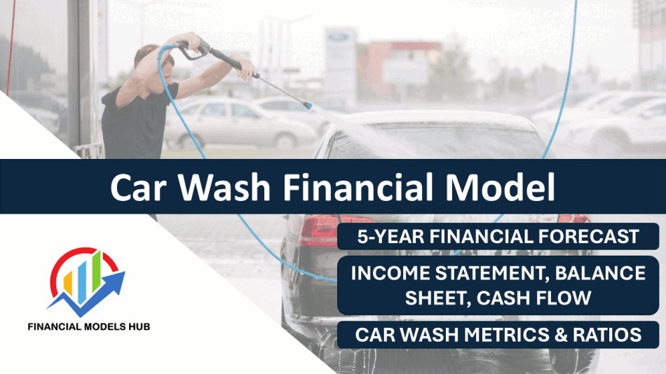 This Car Wash Financial Model Template (5 Year Financial Forecast, Income Statement, Balance Sheet, Cash Flow, Car Wash Metrics & Ratios) has been built for use by any company founder or executive in the Car Wash space, Investors or Analysts looking at researching Car Wash businesses or Students looking to study how a Car Wash Business operates and the key variables underpinning it.