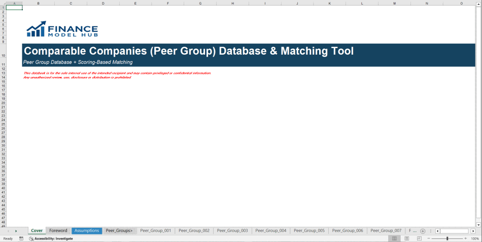 This Excel-based Comparable Companies (Peer Group) Database & Matching Tool is designed to dramatically accelerate one of the most time-consuming tasks in corporate finance and strategic analysis: building a high-quality, defensible peer set. Whether you need comparable companies for valuation, benchmarking, strategy, performance comparisons, market positioning, investor materials, or any other use case where a peer group is required, the model helps you move from "blank page" to a robust shortlist within minutes. The database is built on ~15 years of hands-on professional peer group work and is organised around historical Subject Companies. A Subject Company is the original reference business that served as the basis for a peer group build in prior analyses (e.g., valuations, PPAs, transaction-related work, benchmarking exercises, or similar contexts). For each Subject Company, a dedicated peer group was created through detailed manual research and iterative refinement—mirroring how comparable company selection is actually done in professional practice rather than relying on generic one-click screens. All Subject Companies have been anonymised, as the underlying work originates from prior professional projects. The key idea of this model is simple: you define the profile of your current company and the tool identifies the most similar Subject Companies from the library. You can then reuse and adapt the peer groups that were originally built for those reference cases—giving you a proven starting point, clear reference logic, and substantial time savings. The comparison to the Subject Company is also critical when interpreting the output: the tool does not only rank peer lists, it ranks the underlying reference cases that explain why a given peer group exists and in which context it was originally constructed. The library includes peer group cases across a broad range of industries. Coverage spans major sectors such as Energy, Materials, Industrials, Consumer Discretionary, Consumer Staples, Health Care, Financials, Information Technology, Communication Services, and Real Estate—with granular sub-industry differentiation (e.g., various industrial machinery categories, building products, chemicals, packaging, healthcare services/technology, software & services, semiconductors, media/telecom, REITs). This makes the tool suitable for a wide set of company profiles, while still allowing niche refinement via end-market and keyword matching. With 300 curated peer group cases, consistent classifications, and a transparent scoring approach, the model helps you work faster while maintaining quality and repeatability—ideal for advisors, investors, corporates, and analysts working under time pressure.