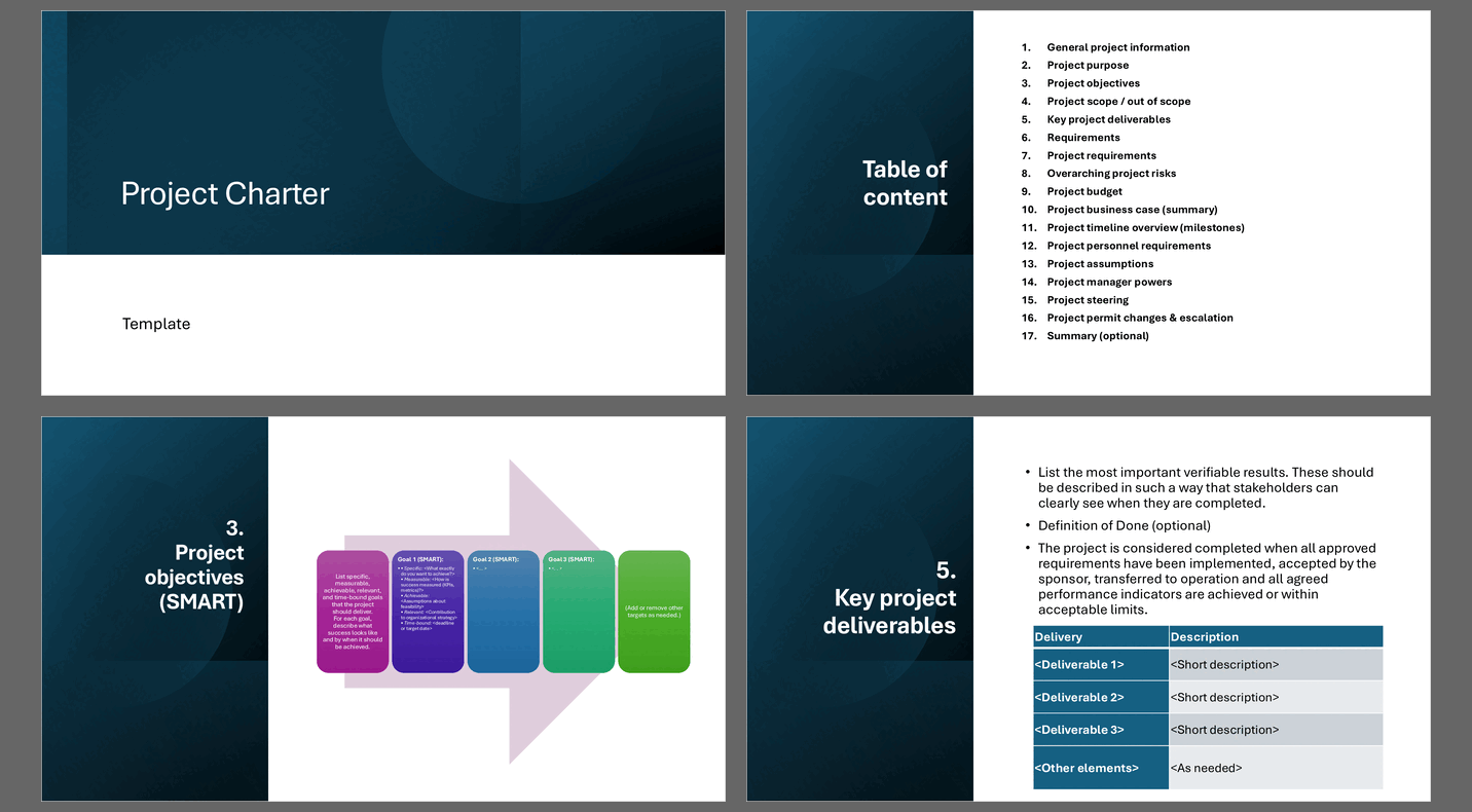 Project Charter (PowerPoint): A PPTX version of the project charter in case you prefer a more visualized version instead of a Word document.