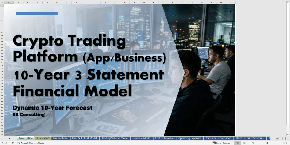 If your business operates a crypto trading platform, digital asset exchange, or Web3 trading infrastructure, this financial model provides a structured system to analyze growth, profitability, and capital requirements.