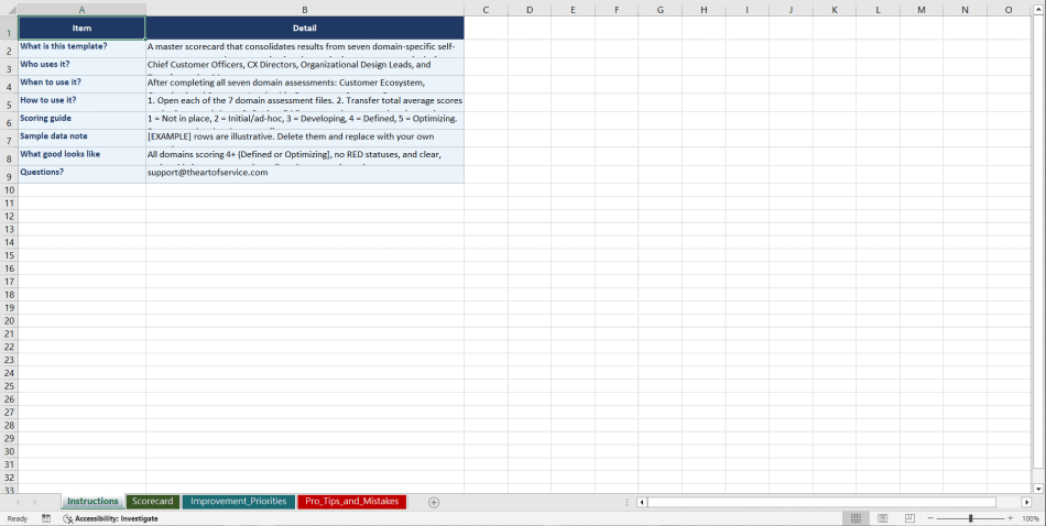 Instant download. Open the first assessment. Score your organisation. Know exactly where to start.