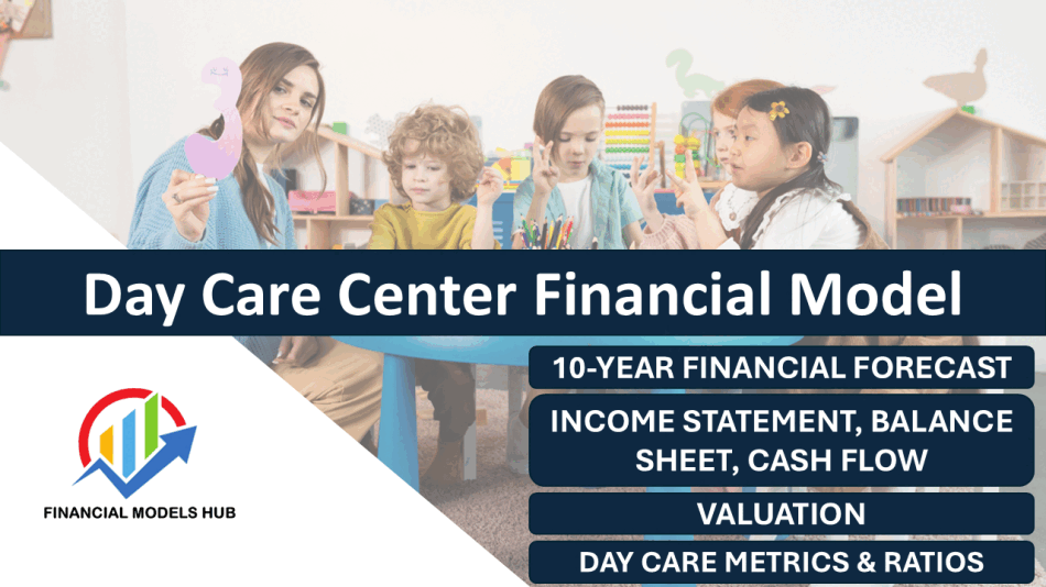 This Day Care Center Financial Model Template has been built for use by any Day Care Center owner or executive looking for a simple to use 3 way financial model (Income Statement, Balance Sheet and Cash Flow).