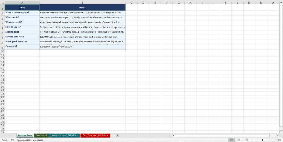 Instant download. Open the first assessment. Score your organisation. Know exactly where to start.