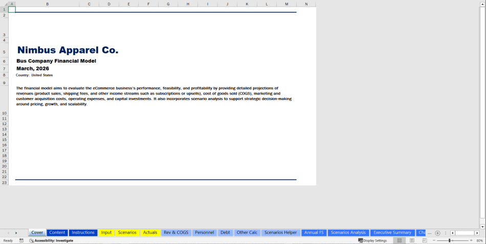 The E-Commerce Financial financial MOdel is an integrated 10-year operating model that transforms raw assumptions—like website traffic, conversion rates, and product costs—into comprehensive financial statements and valuation metrics. It follows financial modeling best practices, ensuring clarity for internal decision-making and credibility for external investors.