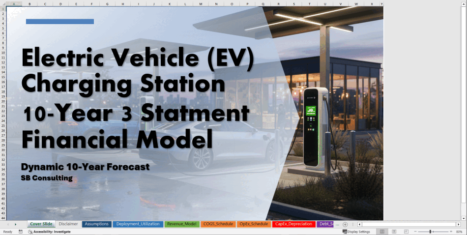 This model simulates the growth of an EV charging station network and automatically generates financial statements, cost structures, and profitability analysis based on operational and financial assumptions.