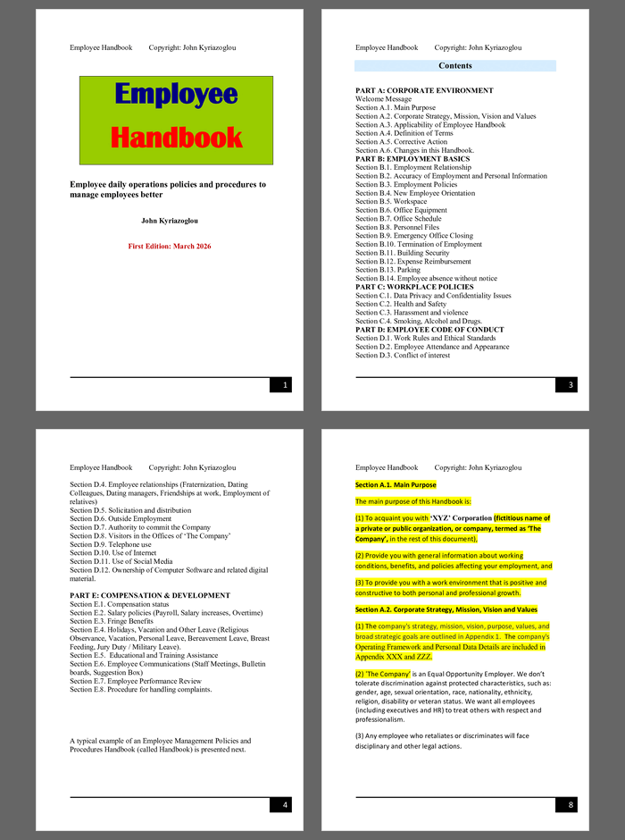 Overview: This book describes employee management policies and procedures for any type of private or public company or organization.