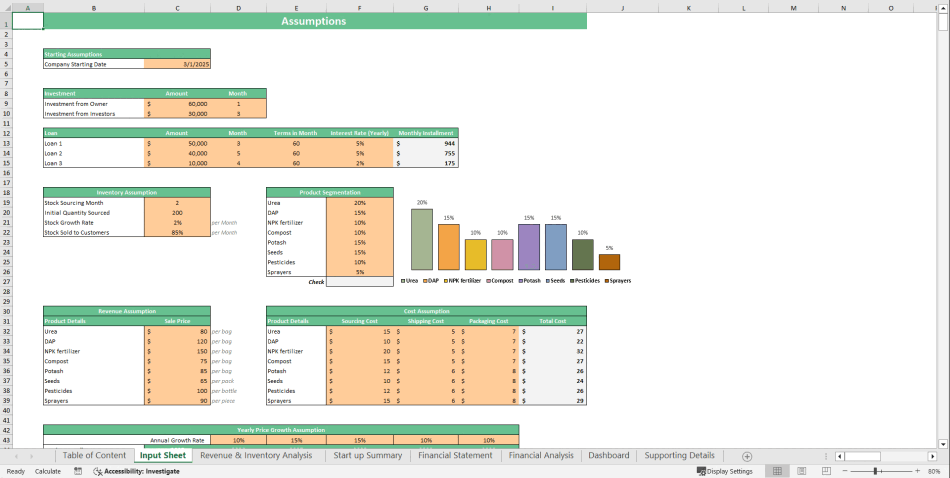 Starting your own Fertilizer Store sounds exciting but it can be very complex. With the help of this tool, "Fertilizer Store Financial Model," your journey becomes simpler. This tool helps entrepreneurs, startups, and investors gain a clear financial roadmap for their Agricultural business.