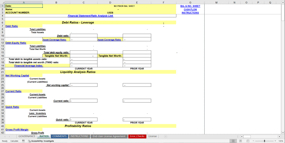 Unlike basic spreadsheet templates, this model is built as a structured analysis system with organized inputs, calculated outputs, and a clear workflow for reviewing financial condition. The framework supports disciplined review of balance sheet strength, income statement performance, cash flow indicators, and credit risk drivers.