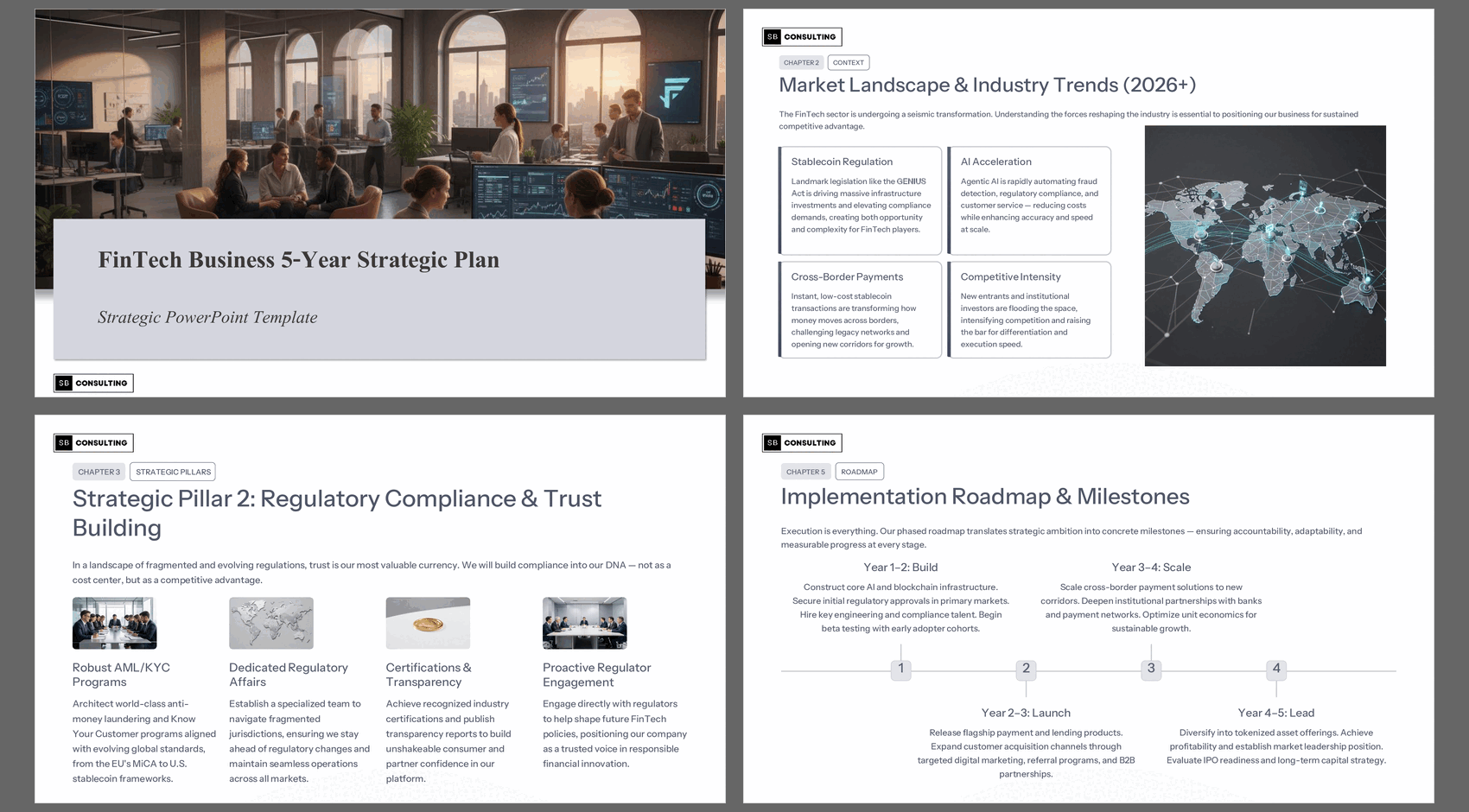 It's a high-impact, investor-grade 5-Year FinTech Strategic Plan PPT designed to: