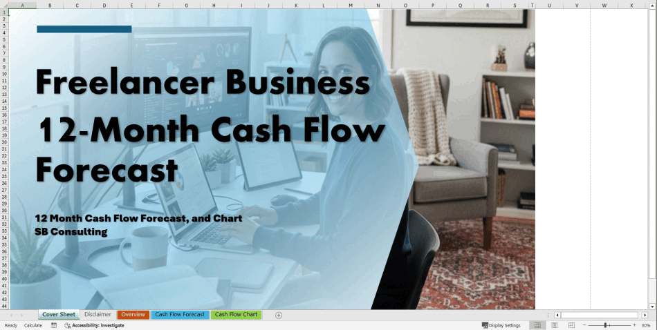 The Freelancer Business 12-Month Cash Flow Forecast Model gives you: