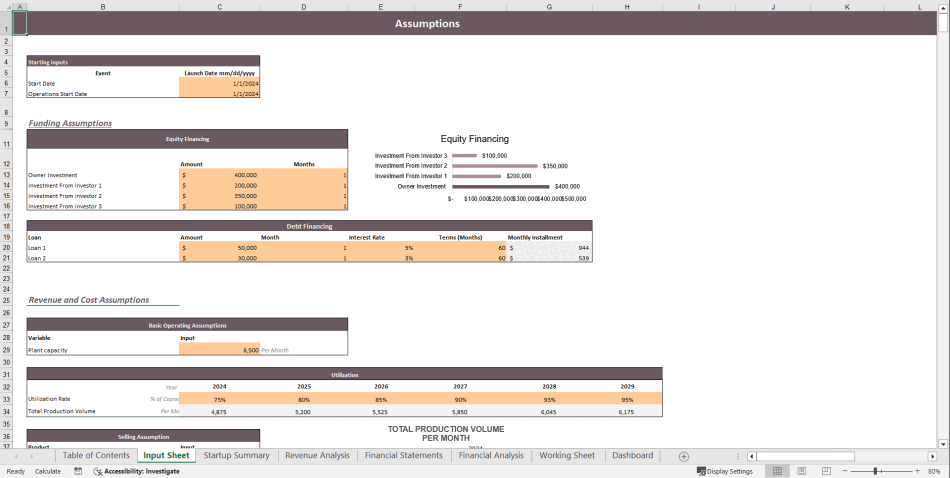 1. Sensitivity Analysis – Adjust variables like average price and sales volume to see the impact on financial projections.