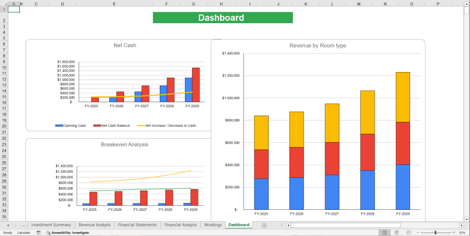The Hostel Excel Financial Model Template is a powerful financial planning tool designed to assist hostel business owners, startup founders, and potential investors in making informed decisions. This model provides a solid foundation for financial forecasting, ensuring that businesses can track their financial health, assess profitability analysis, and evaluate growth prospects.
