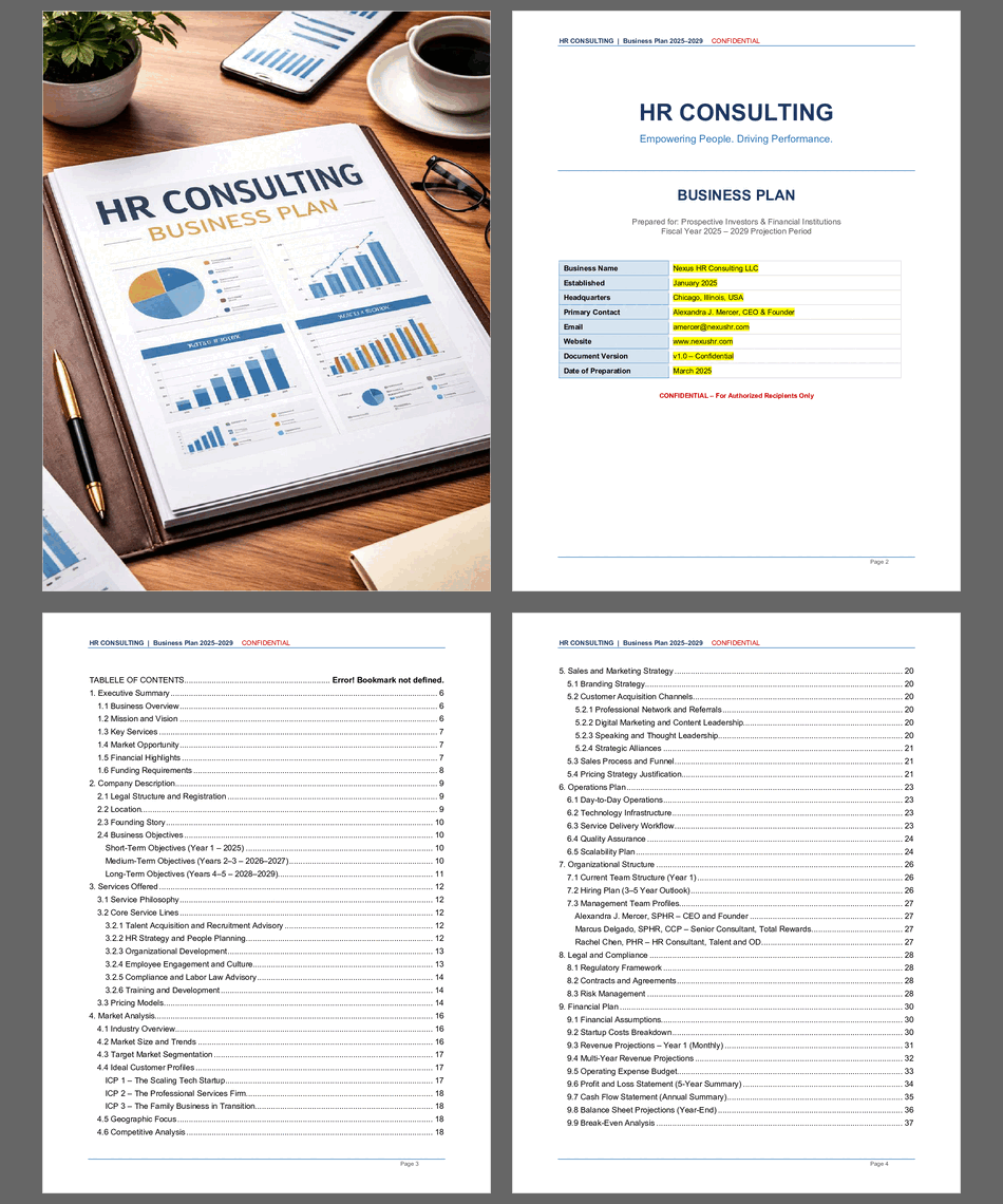 This is a fully loaded, investor-ready, conversion-optimized HR Consulting Business Plan Template engineered to help you launch faster, win clients quicker, and position yourself as a premium authority from day one.