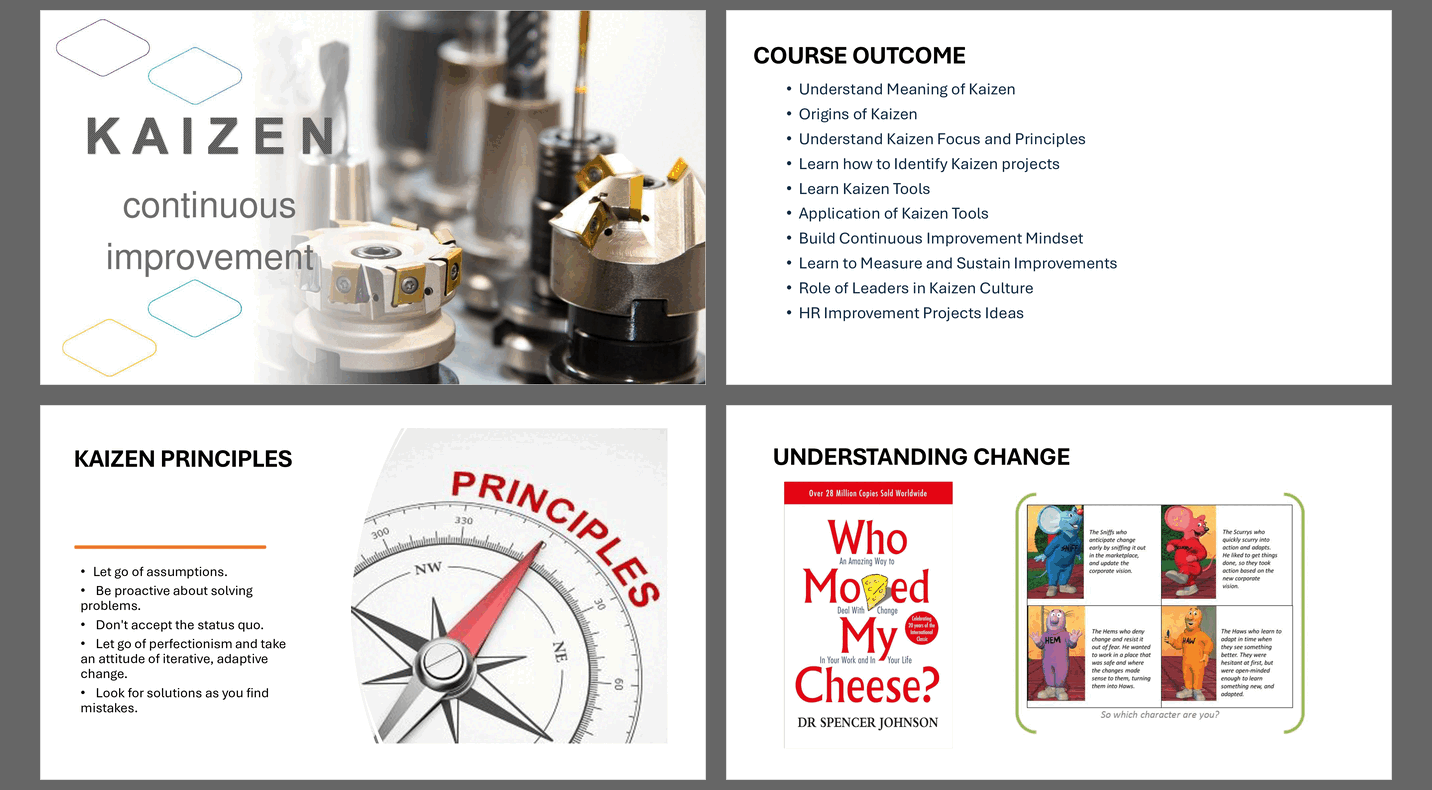 This training goes beyond tools and events. It addresses the human side of Kaizen—mindset, behavior, leadership, and team dynamics—because Kaizen does not succeed in silos or broken teams. When people are aligned and engaged, continuous improvement becomes natural and sustainable.