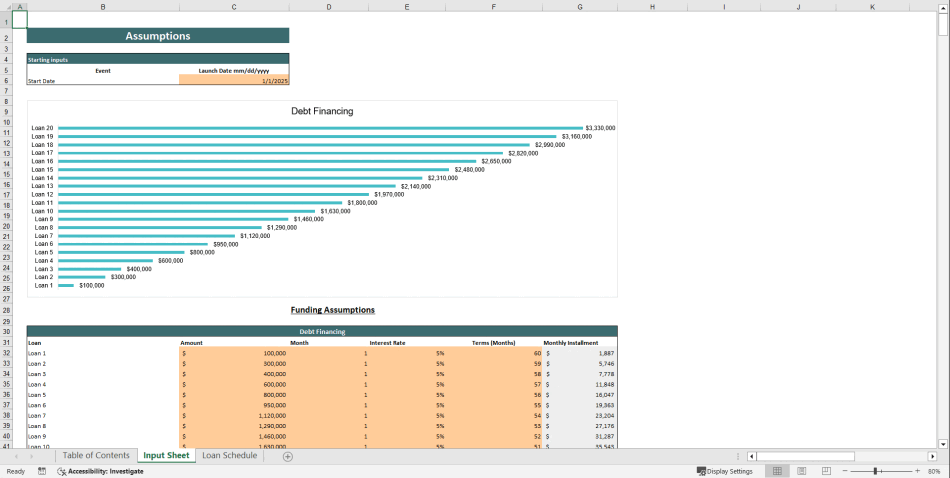 1. Customizable Inputs: Enter loan amount, interest rate, loan term, and start date.