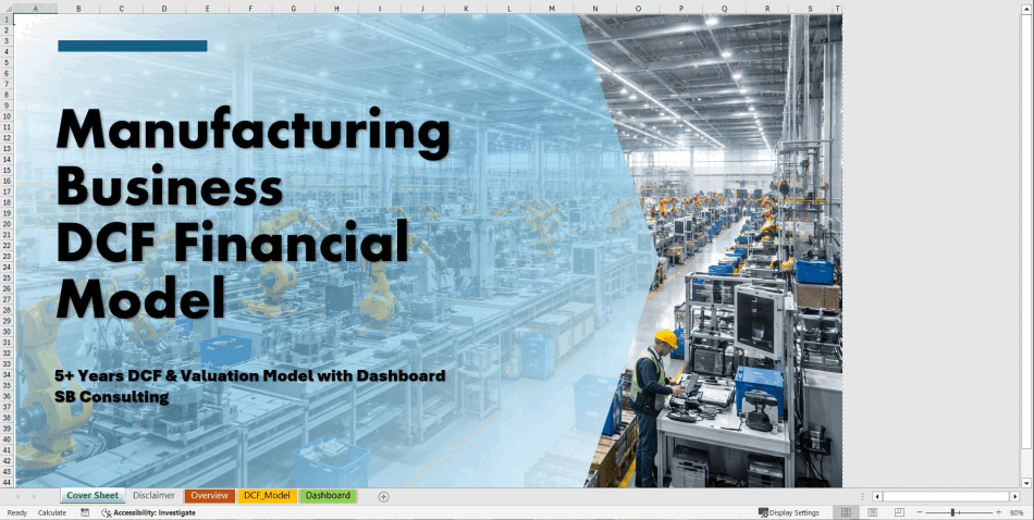Discover the real worth of your manufacturing business with our Discounted Cash Flow (DCF) Financial Model for Manufacturing Businesses—a powerful Excel template built for CFOs, financial analysts, investors, and business owners. Get precise, investor-ready financial insights in minutes.