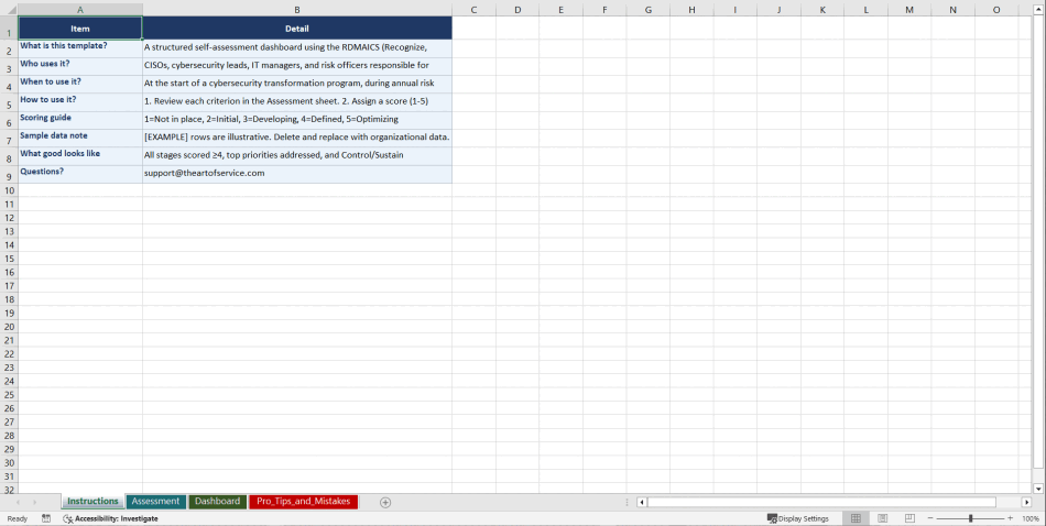 Instant download. Open the first assessment. Score your organisation. Know exactly where to start.