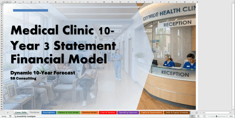 The Medical Clinic Financial Model is a fully integrated 10-year financial forecasting Excel workbook designed for healthcare providers, outpatient clinics, and medical practice operators.