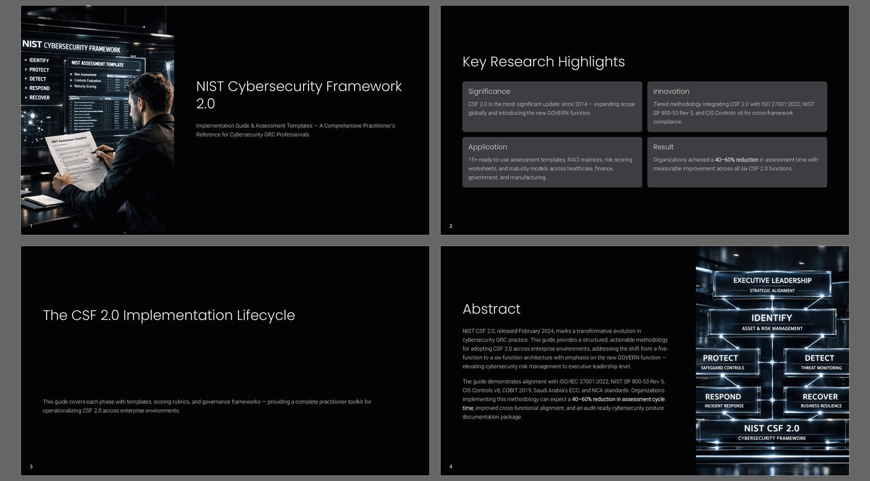 Organizations achieved a 40–60% reduction in assessment time with measurable improvement across all six CSF 2.0 functions.