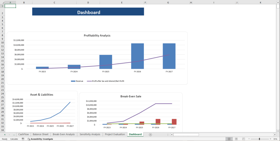 1. Detailed Financial Statements: Includes Income Statement, Cash Flow Statement, and Balance Sheet to track performance and profitability.