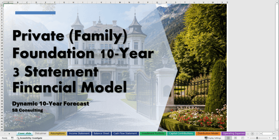 Whether you're a family office principal planning your next decade of capital deployment, a foundation board seeking trustee-ready financial reporting, a wealth manager structuring a long-term endowment for a UHNW client, a private bank advising on intergenerational wealth transfer, an estate attorney designing a tax-efficient distribution framework, or a philanthropic advisor stress-testing a charitable spending policy – this fully integrated 3-Statement Financial Model gives you the exact financial infrastructure to preserve, grow, distribute, and transfer wealth with complete institutional confidence.