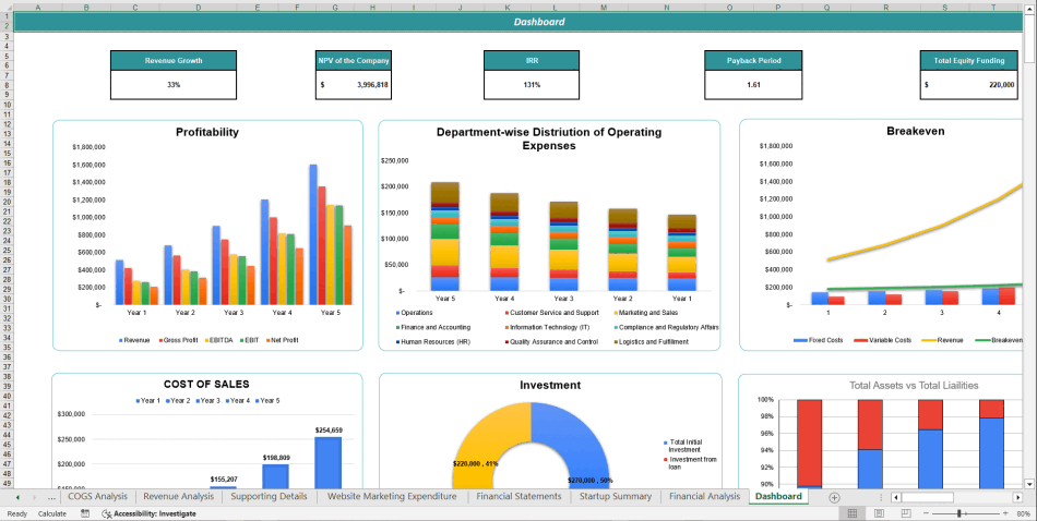 1. Profit and Loss Statement: Track income, expenses, and profit over 5 years.