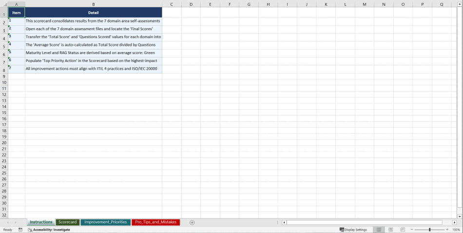Instant download. Open the first assessment. Score your organisation. Know exactly where to start.