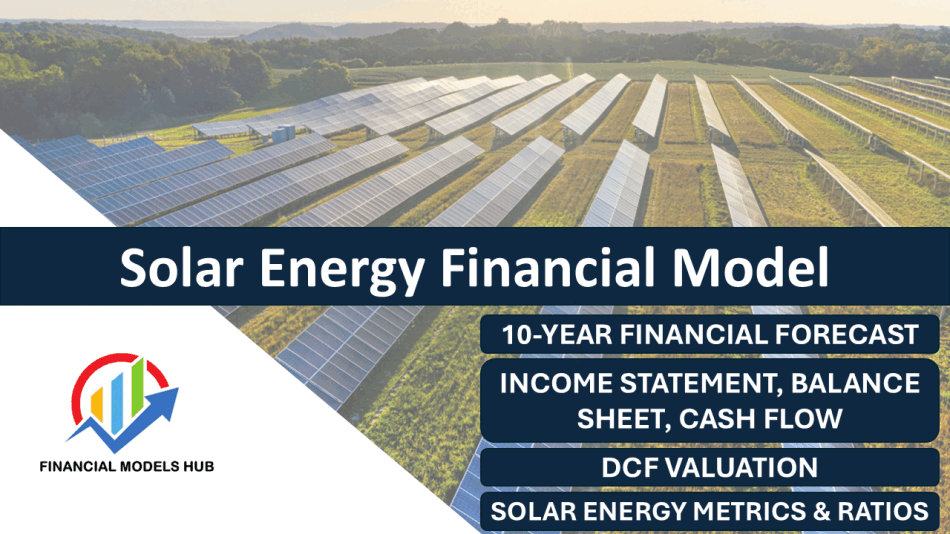 This Solar Energy Financial Model Template (10 Year Financial Forecast, Income Statement, Balance Sheet, Cash Flow, DCF Valuation) has been built for use by any company founder or executive in the Solar Energy space, Investors or Analysts looking at researching Solar Energy businesses or Students looking to study how a Solar Energy Business operates and the key variables underpinning it.