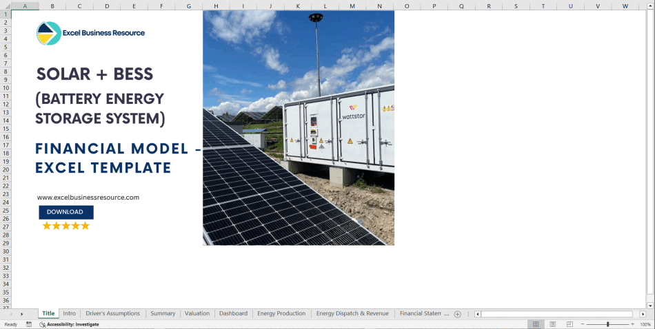 Source: Best Practices in Integrated Financial Model Excel: Solar PV + BESS Financial Projection Model Template Excel (XLSX) Spreadsheet, Excel Business Resource