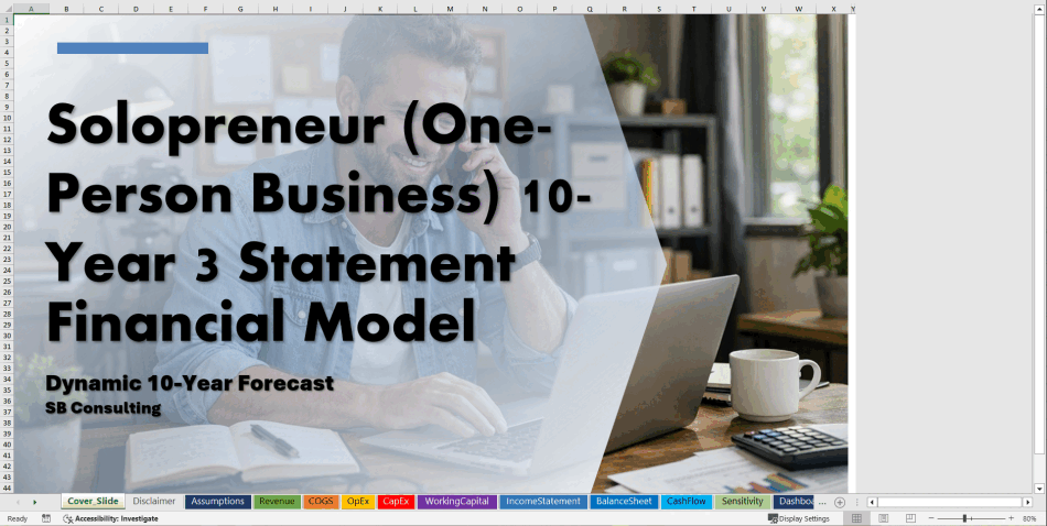 Source: Best Practices in Entrepreneurship, Integrated Financial Model Excel: Solopreneur (One-Person Business) 10-Year Financial Model Excel (XLSX) Spreadsheet, SB Consulting