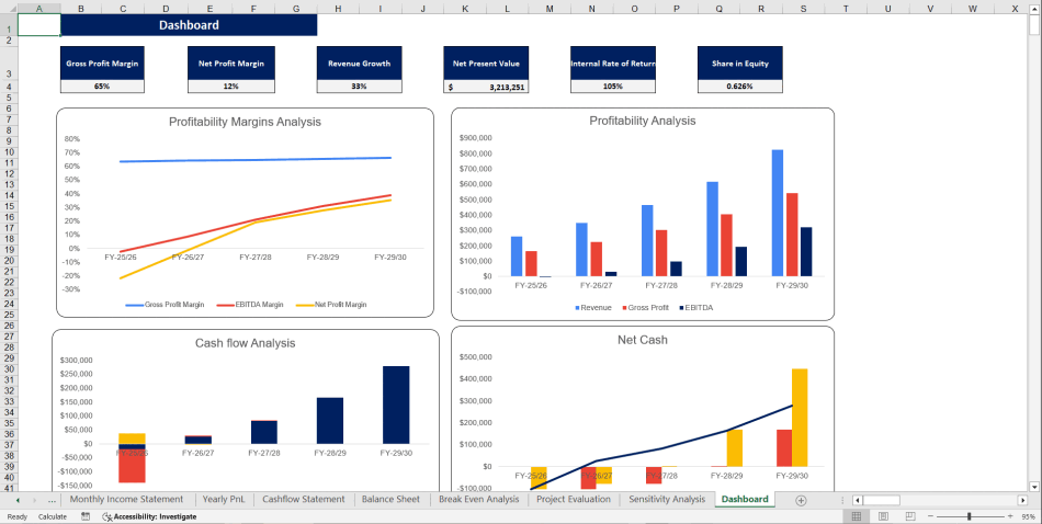 4. Profitability index: Comparison of investment benefits against costs.
