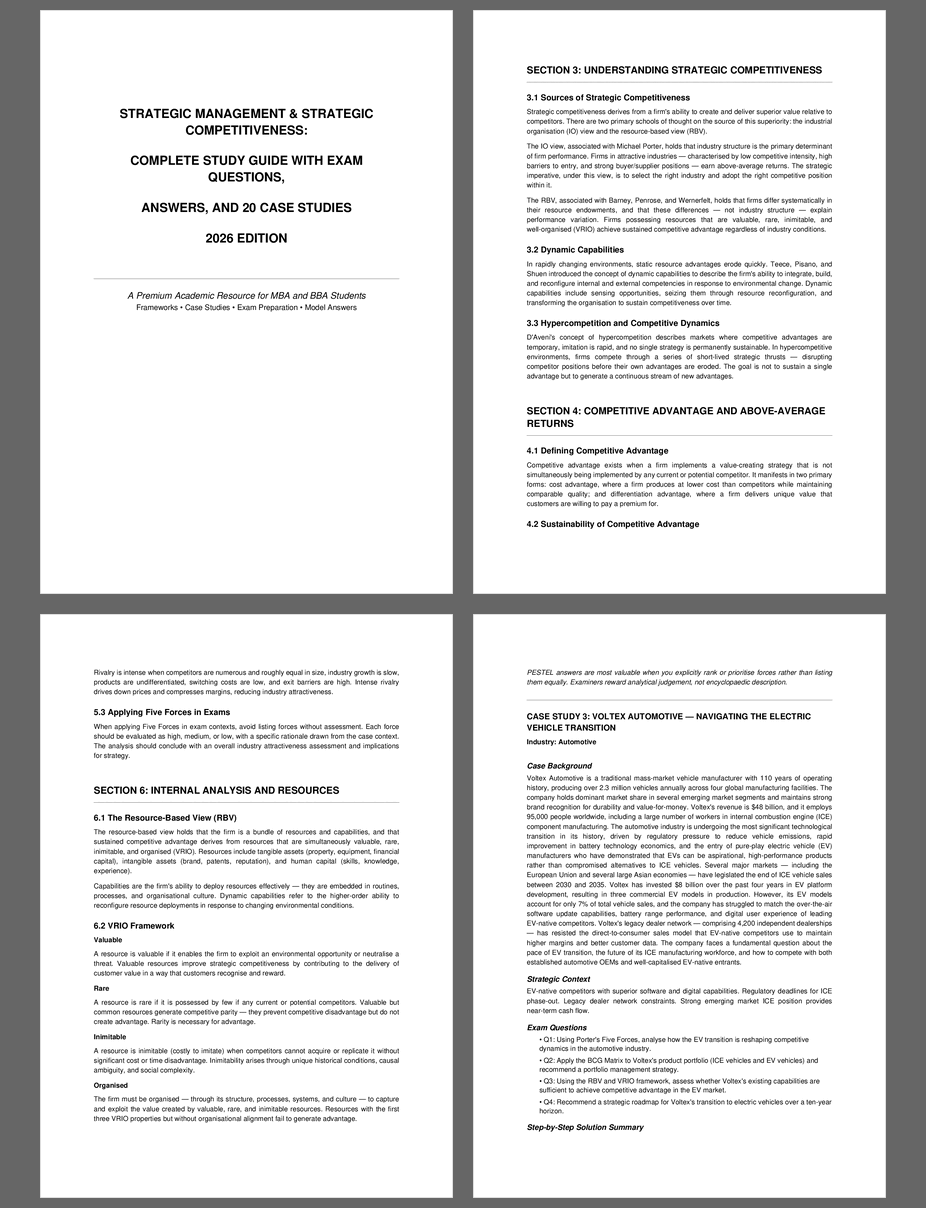 This guide is meticulously structured to cover every aspect of strategic management, from fundamentals to advanced concepts, including real-world case studies with step-by-step solutions.