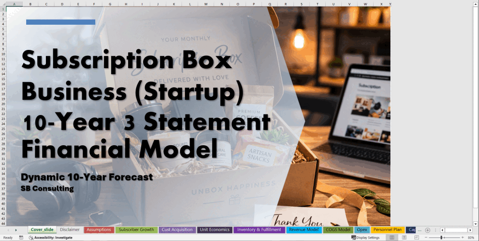 🎁 Subscription Box Business – 10-Year Advanced Integrated 3-Statement Financial Model