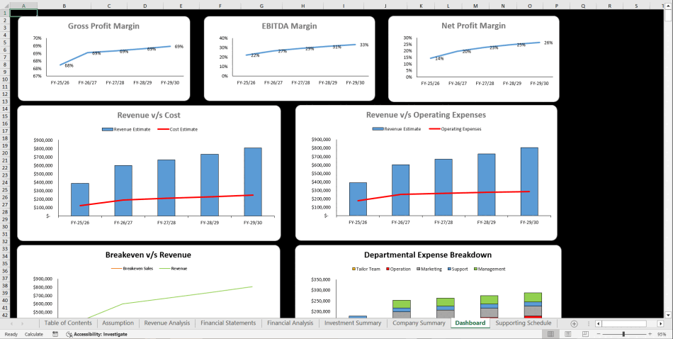 Ultimately, this model helps you make key business decisions by offering detailed analysis of your financial performance and potential profitability.