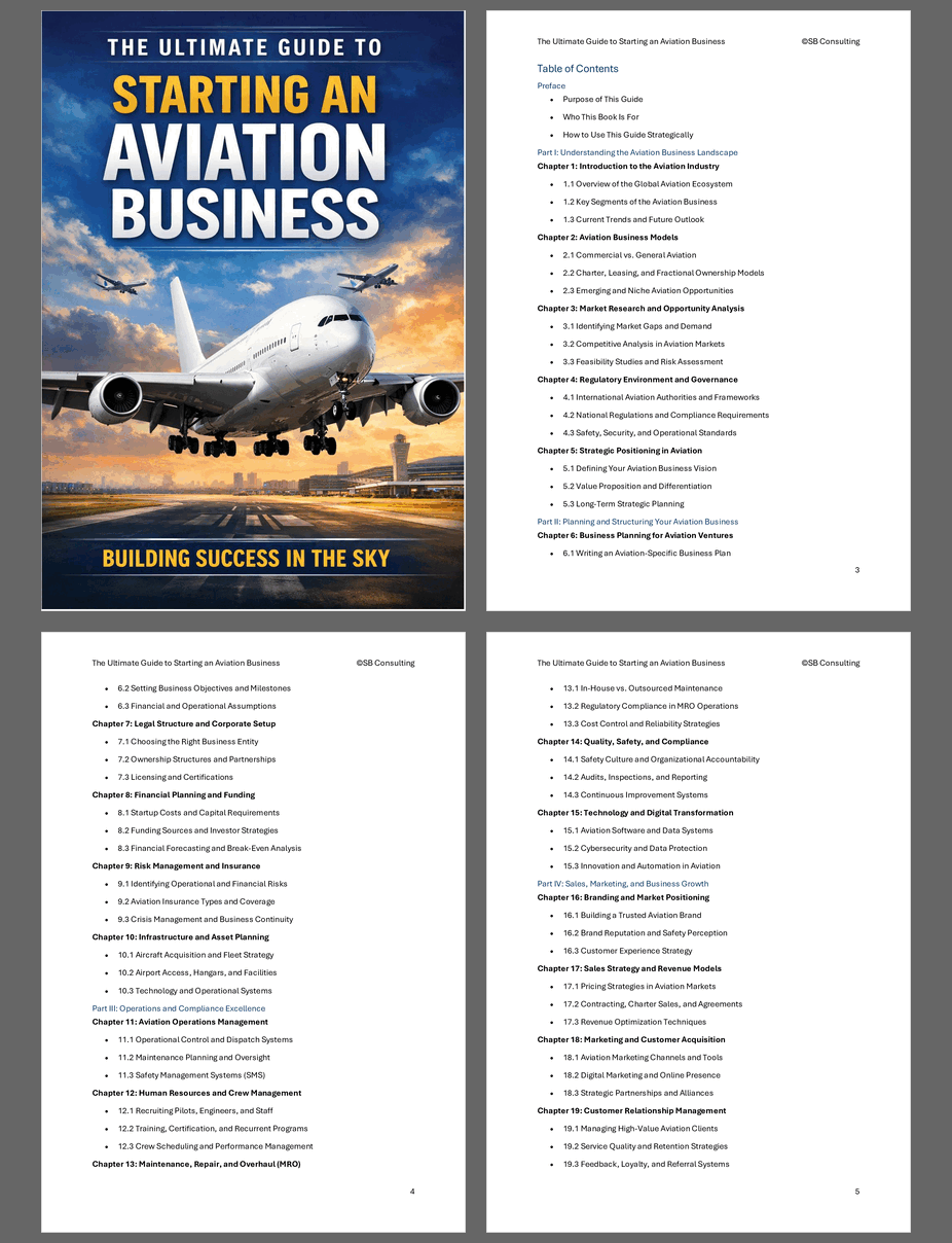 This is the most complete aviation business guide available for entrepreneurs, pilots, investors, and executives who want to build a legitimate, compliant, and profitable aviation company.